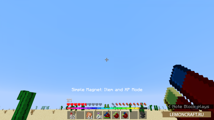 Мод на полезный магнит Crimson Simple Magnet добавляет в игру простенький магнит с помощью которого вы сможете притягивать опыт или различные предметы. Выбор режима работы магнита осуществляется нажатием сочетания клавиш Shift+ПКМ, а включить или выключить магнит можно с помощью правой кнопки мыши. Со временем магнит выйдет из строя, для его починки вам будут нужны железные слитки. В моде присутствует файл конфигурации, где вы сможете настроить радиус действия и прочность магнита.